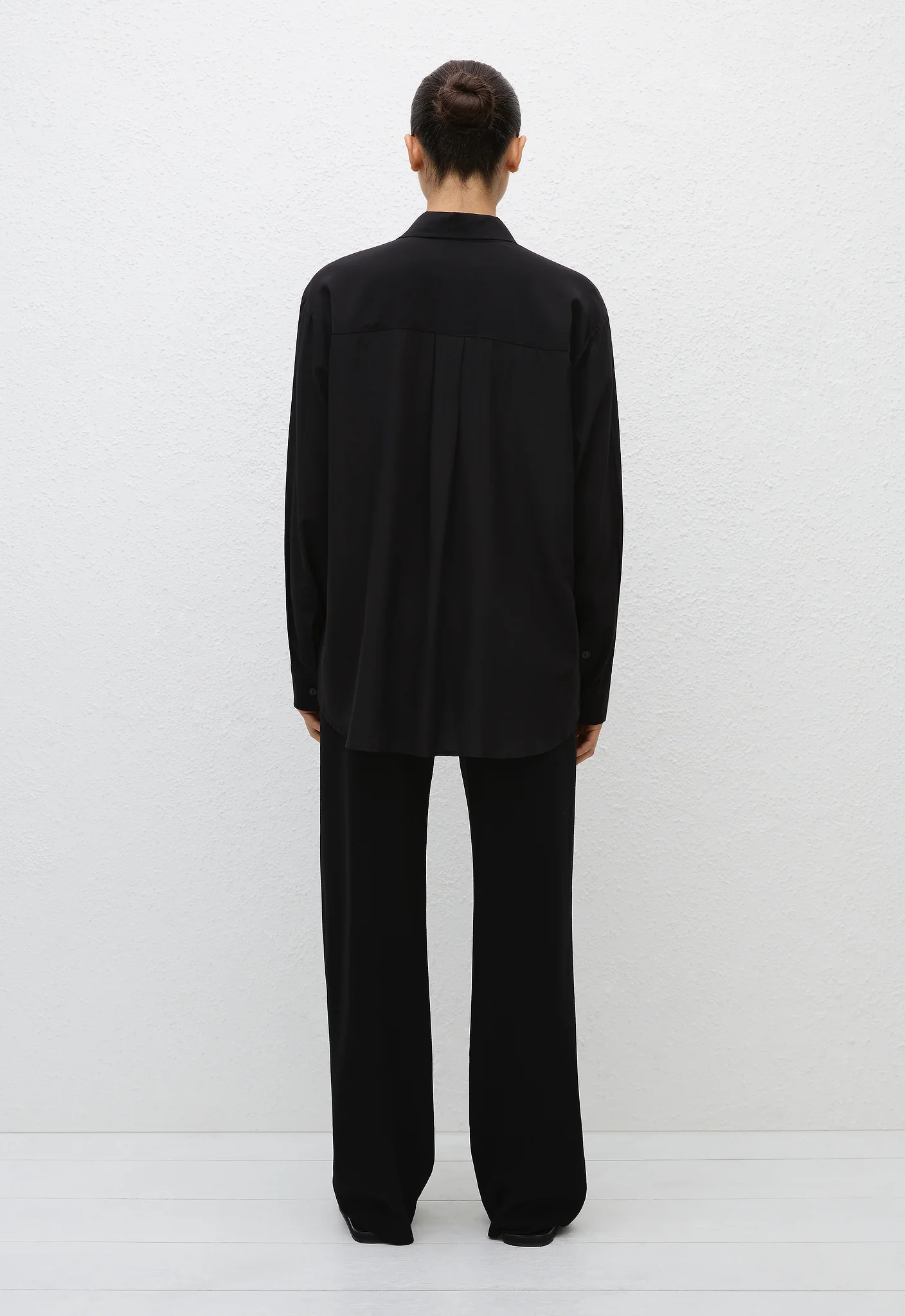 Easy without compromise, this oversized long sleeve shirt was inspired by a vintage men's style. Made from our silk crepe de chine, it has an exposed button placket and side splits. Style as a set with the matching Drawstring Trouser, or wear tucked into our Relaxed Crepe Pant for an elevated evening look.