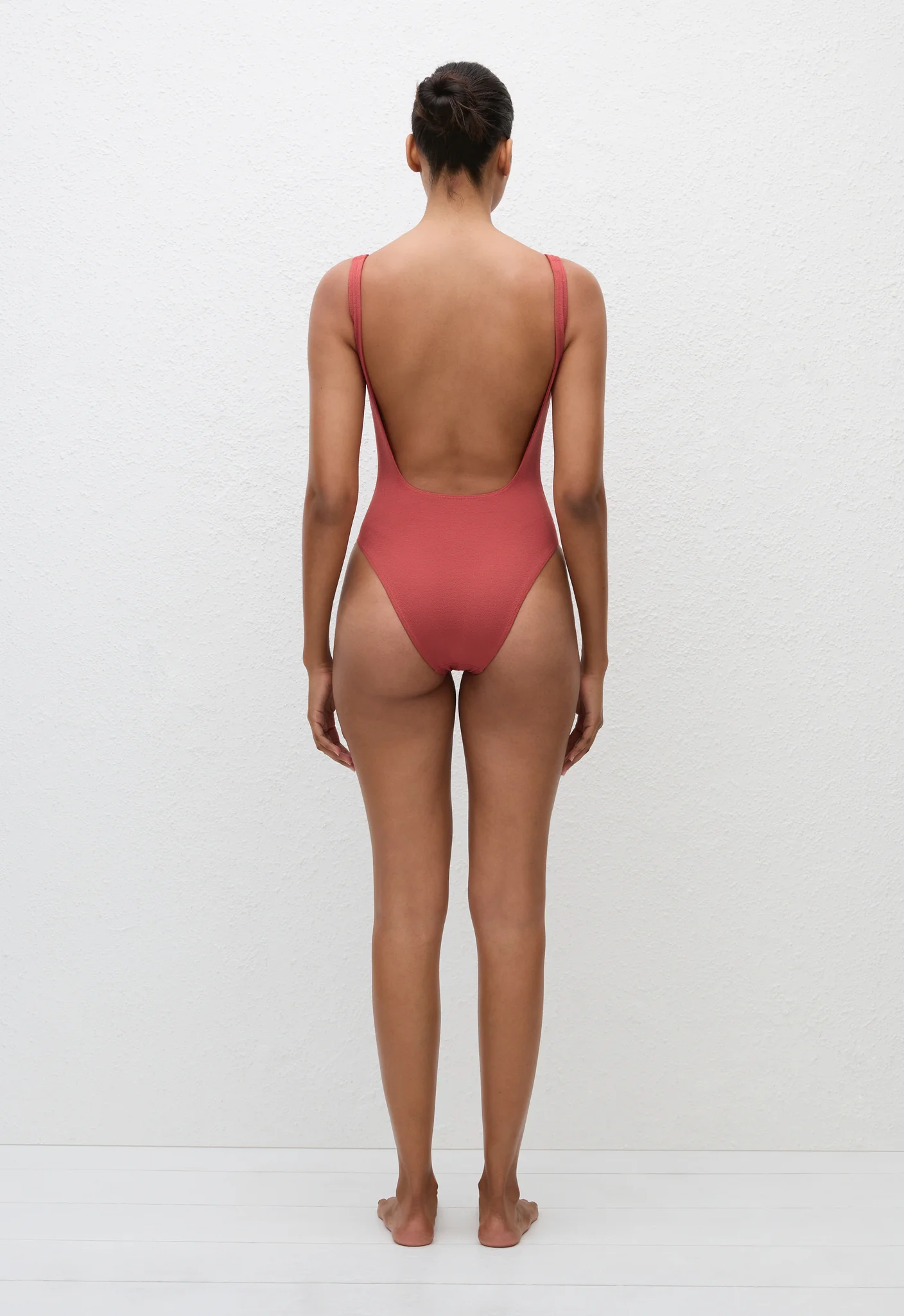 A 90s inspired athletic maillot, high cut for an elongated leg line. Offering medium rear coverage with a low rise back. Fully lined and made from recycled nylon and elastane, with twin needle stitch detailing.